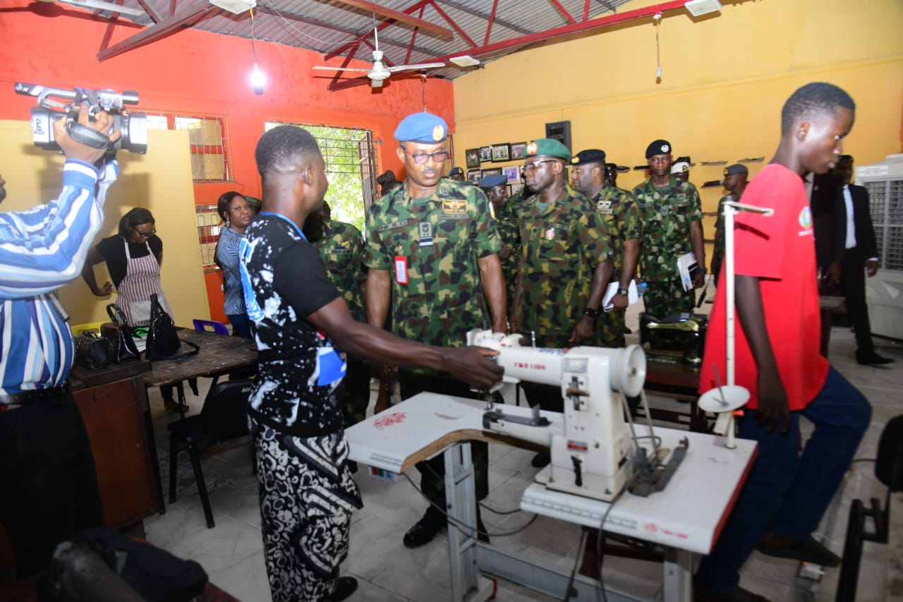 During the inspection, AVM Ilo visited several workshops, including automobile, auto-mechanic, carpentry, woodwork, weaving and textile, leather works, ceramics, fabrication, welding, plumbing, waste management, photography and events management. He also toured the agricultural wing, ICT centre, medical centre, training battalion and administrative offices.